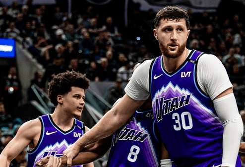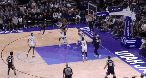 弩机高位拿球策应同时将戈贝尔调离禁区,米哈借贝利无球掩护上提,见换防过来的华子采取Deny阻止上提接球立即见招拆招反跑空切篮下摆脱,弩机球领人精准制导助其扣空篮得手。