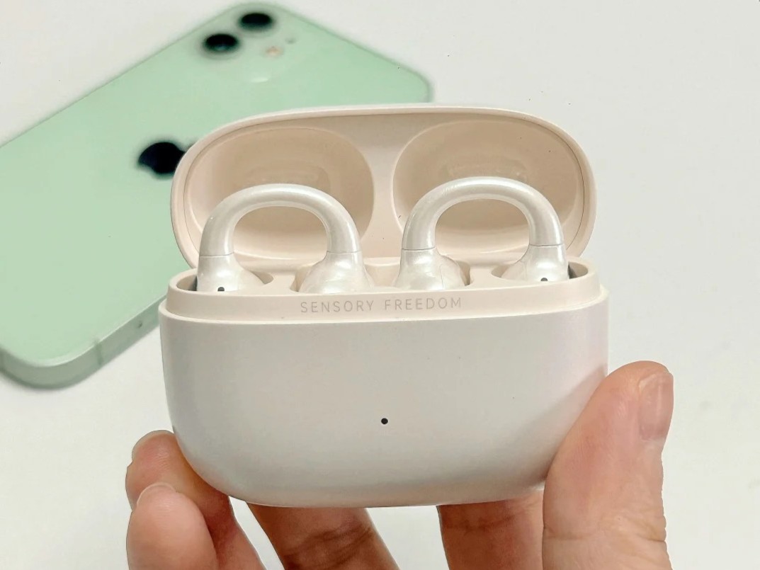 佩戴方面:这款耳机日常佩戴体验有亮点也有小不足。它靠弧形桥设计能稳稳贴合耳廓,而且单只才 5.3g,戴在耳朵上没什么负重感,短时间用着很轻松。不过受这个设计影响,要是佩戴时间长了,耳朵会有轻微夹痛感,整体舒适度不算特别高,长时间用的话得留意下。