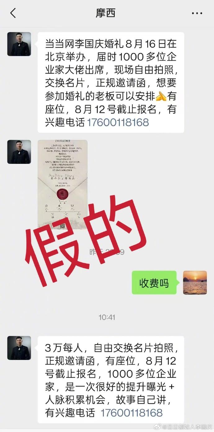 婚礼筹备期间,网络上突然出现兜售"婚礼门票"的乱象。有不法分子以2-3万元的高价叫卖入场资格,甚至承诺可与名人合影等虚假权益。对此,李国庆本人在社交媒体发表严正声明:"我们的婚礼从未对外售票,更不会收取任何礼金。"据悉,婚礼仅邀请百余名至亲好友,现场将实行严格的实名制核验。