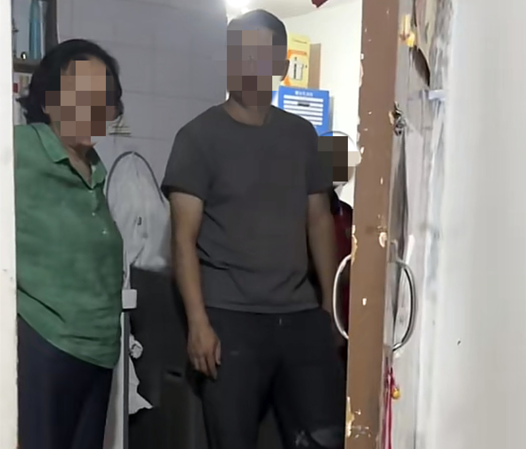 从双方的对话来看,男的是女子的丈夫,那个大妈是她的亲姑,此前她就被送到医院治疗过了,精神状态也还算稳定,别人说话她也可以听得进去。