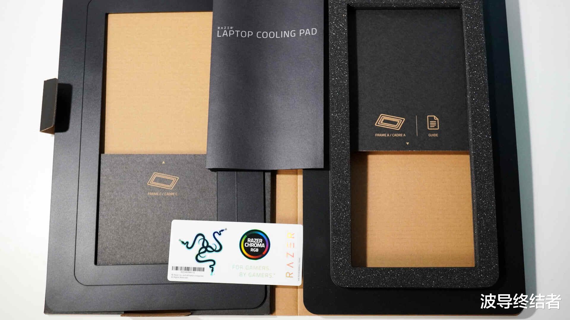 针对不同的笔记本型号,雷蛇这款笔记本散热支架给了3个不同的磁吸框架。分别适用无风扇的笔记本,14-16英寸的本子,以及17-18英寸的笔记本电脑。其中两个在配件包里,一个在本体上,等下就能看到。