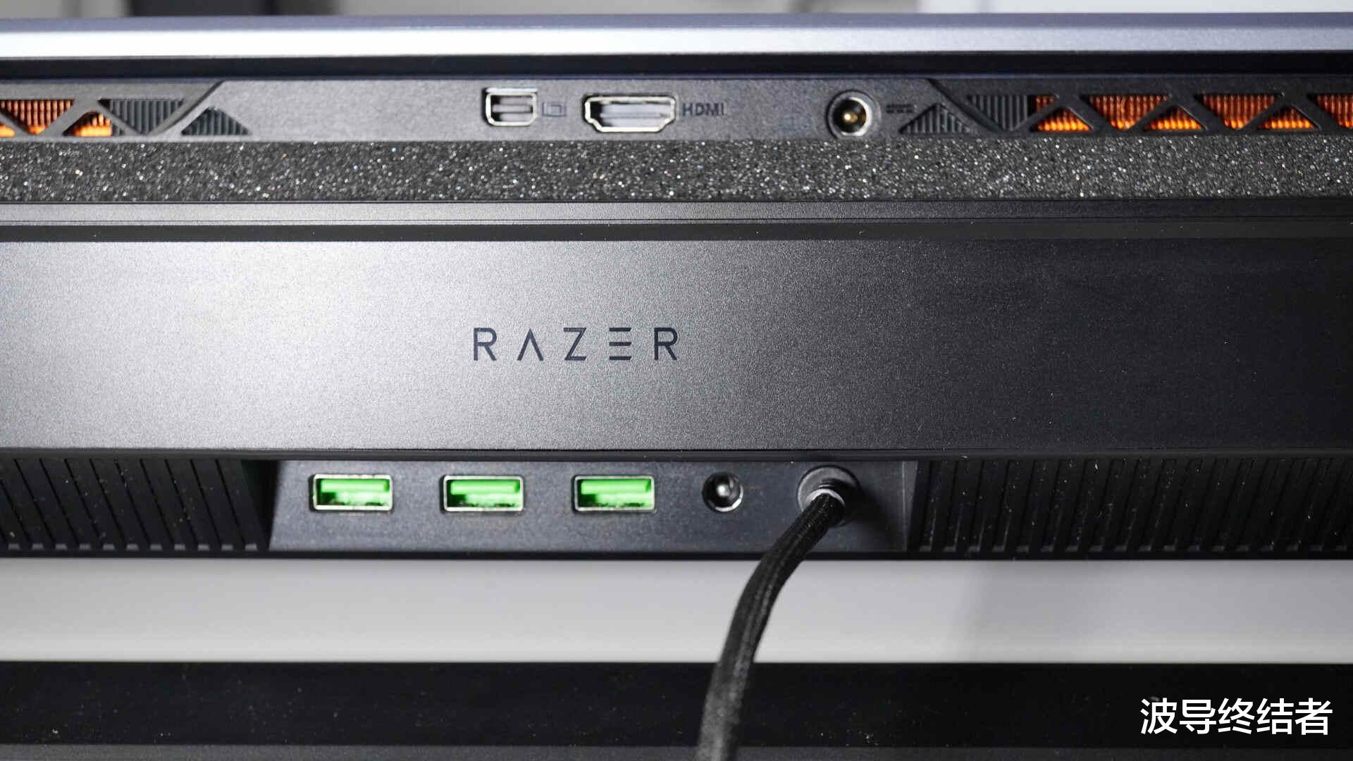 其它接口在散热支架的背部,除了DC电源接入,以及0.5米长USB-A线缆连接电脑外,还扩展出了3个USB2.0的接口,正好可以连接键盘鼠标耳机一整套外设。特别是对于不少2.4G无线设备,外接的USB2.0更有助于减少信号干扰,提高无线通讯质量。