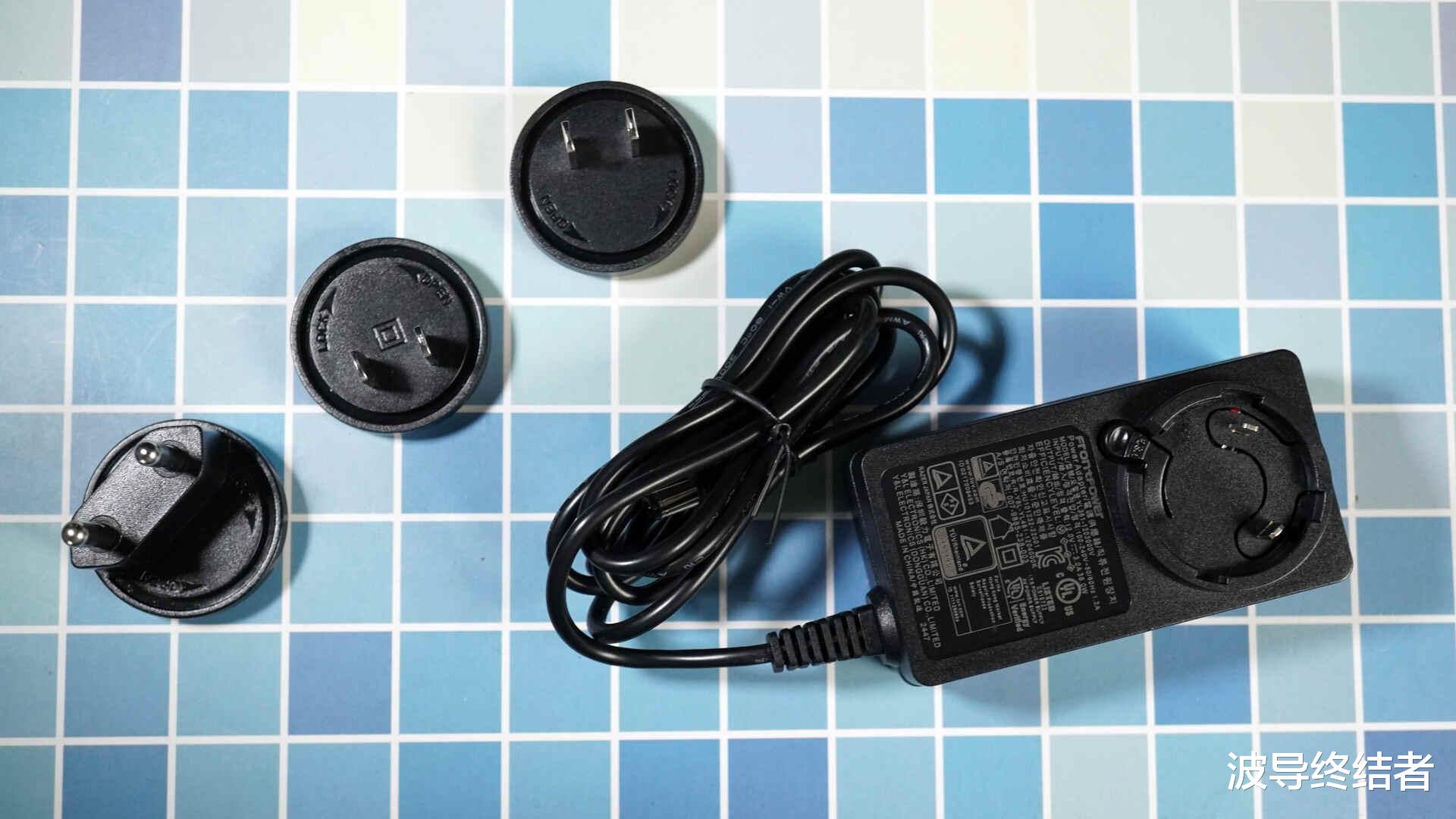 供电方面,由于这款散热支架集成了140mm的强力高转速风扇,RGB灯光以及USB集线器功能,所以搭配了独立的电源适配器。3款可拆卸的插头,全球都可以通用。变压器支持100-240V的宽电压输入,12V 3.0A共36W功率输出,马力全开绰绰有余。