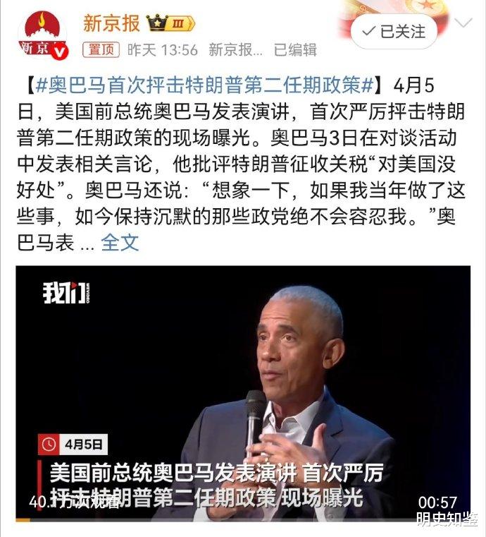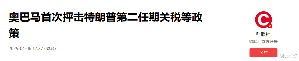 [2]奥巴马首次抨击特朗普第二任期关税等政策 财联社