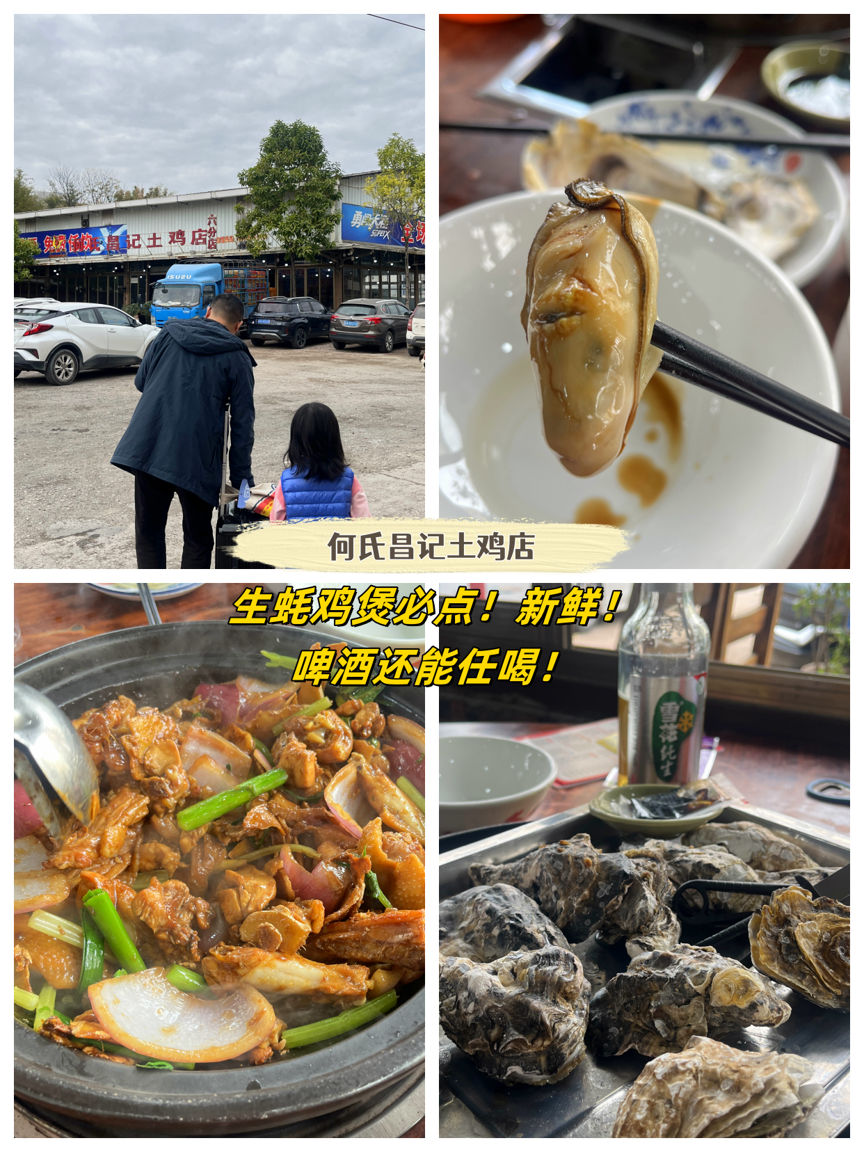 几乎爆满!98元生蚝鸡煲必点!新鲜!啤酒任喝!饭后步行几百米就到酒店