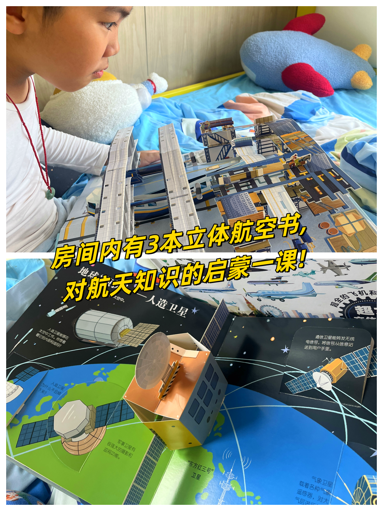 房间内三本立体航空书,对航空知识的启蒙一课