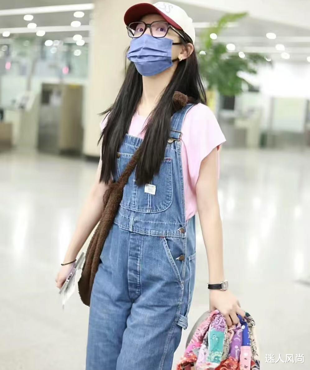 粉色T恤+背带裙=减龄约会装(变装技巧:降温时外搭灰色连帽卫衣,把背带裙当半裙穿,一衣两用超省钱~)