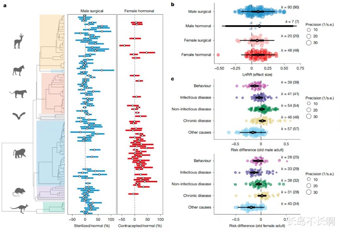 对于雌性动物(以及女性)来说,逻辑就简单多了。 研究发现,无论是吃避孕药(抑制排卵)还是手术绝育,都能延长寿命。