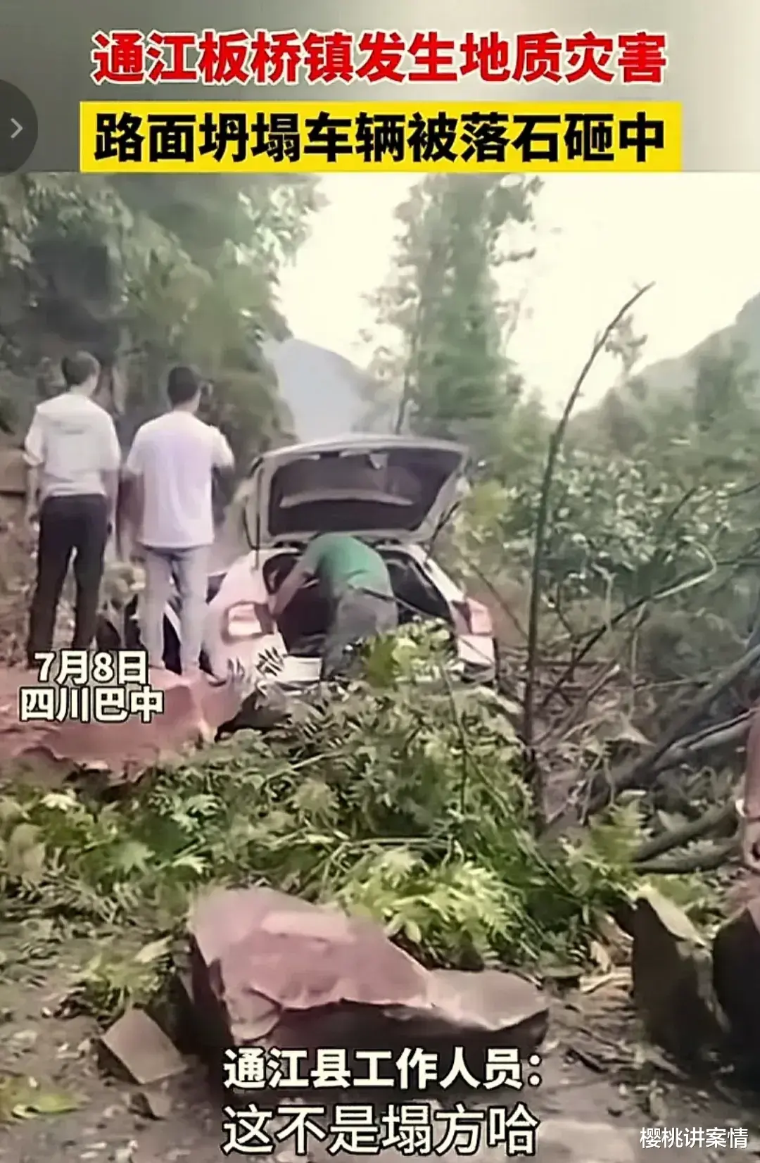 出事车辆沿S204线由通江县城至板桥口镇方向行驶至S204线K33+380处,被突然垮落的山体落石砸中。事故发生后当地立马派相关工作人员进行紧急救援,但遗憾的是事故依然造成了3人死亡2人受伤。目前伤着正在医院救治中,并没有生命危险。