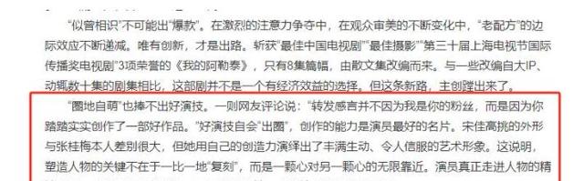 “似曾相识不可能出爆款,圈地自萌捧不出好演技。好演技自会出圈,创作的能力是演员最好的名片。”