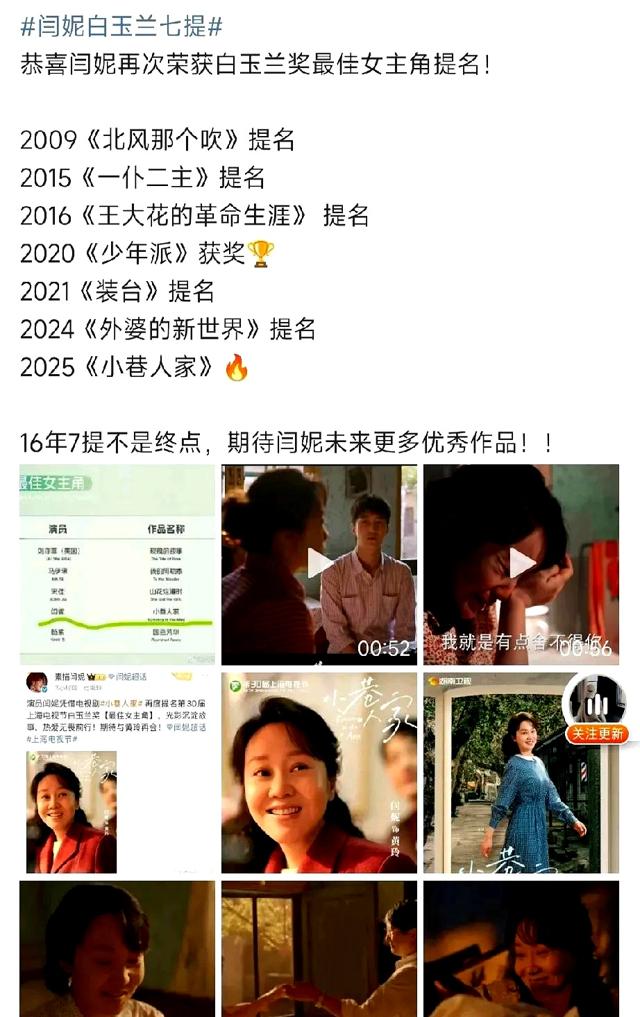 然而,谁能想到,这已经是闫妮第七次陪跑白玉兰了。