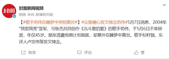 2025年5月6日下午,成都的天空阴沉。44岁的歌手苟伟在家中悄然离世,原定当天下午的就医计划永远停在了日程表上。好友@杉籽伽在微博发布的讣告,让无数乐迷惊愕——这位曾与张杰共同创作《北斗星的爱》的音乐人,生命永远定格在了中年。