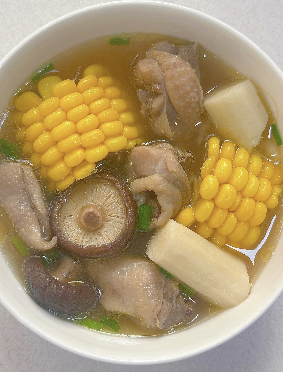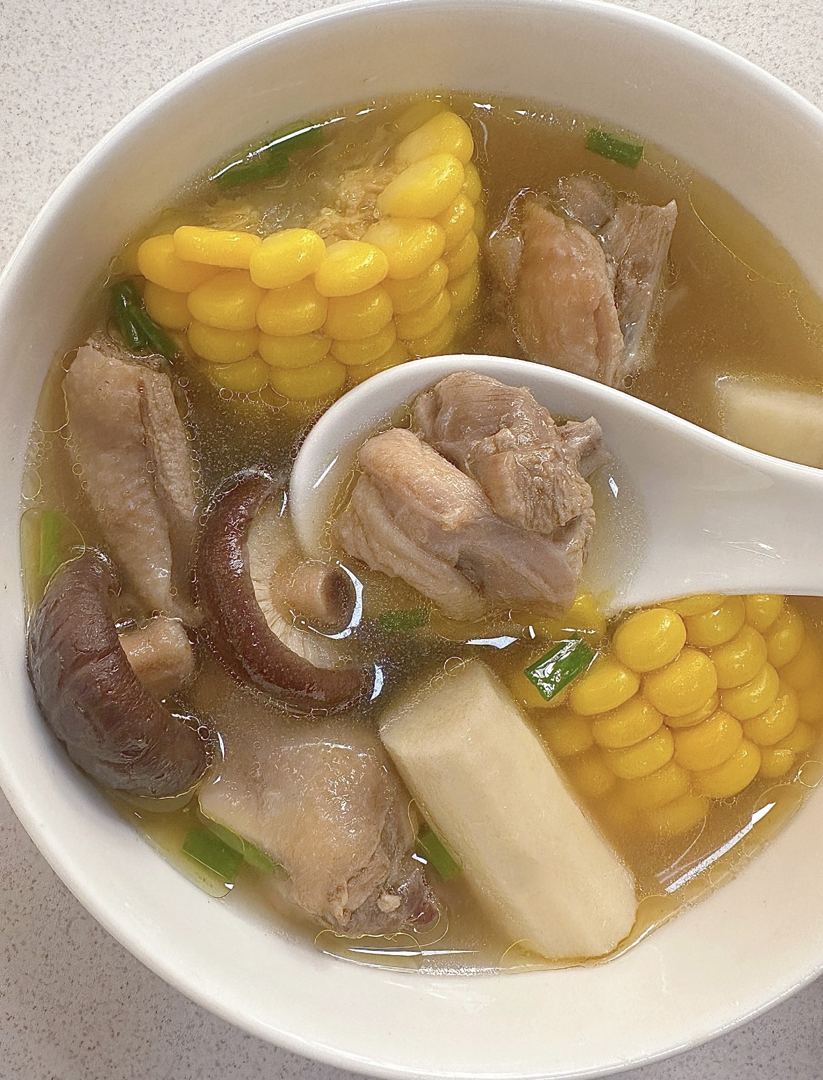 别看食材朴素,它们可都是“会聊天”的主。玉米负责清甜,像班花发言,一开口就全场安静;香菇负责鲜,是那种低调学霸,不声不响把分数拉满;山药黏黏糯糯,是小组里默默递笔记的暖男;红枣最会来事,甜得刚刚好,像插科打诨的开心果;至于鸡肉?当然是班主任,把所有“学生”管得服服帖帖,还让汤汁升级成金黄色。几个人凑一起,就是一场舌尖上的团建。