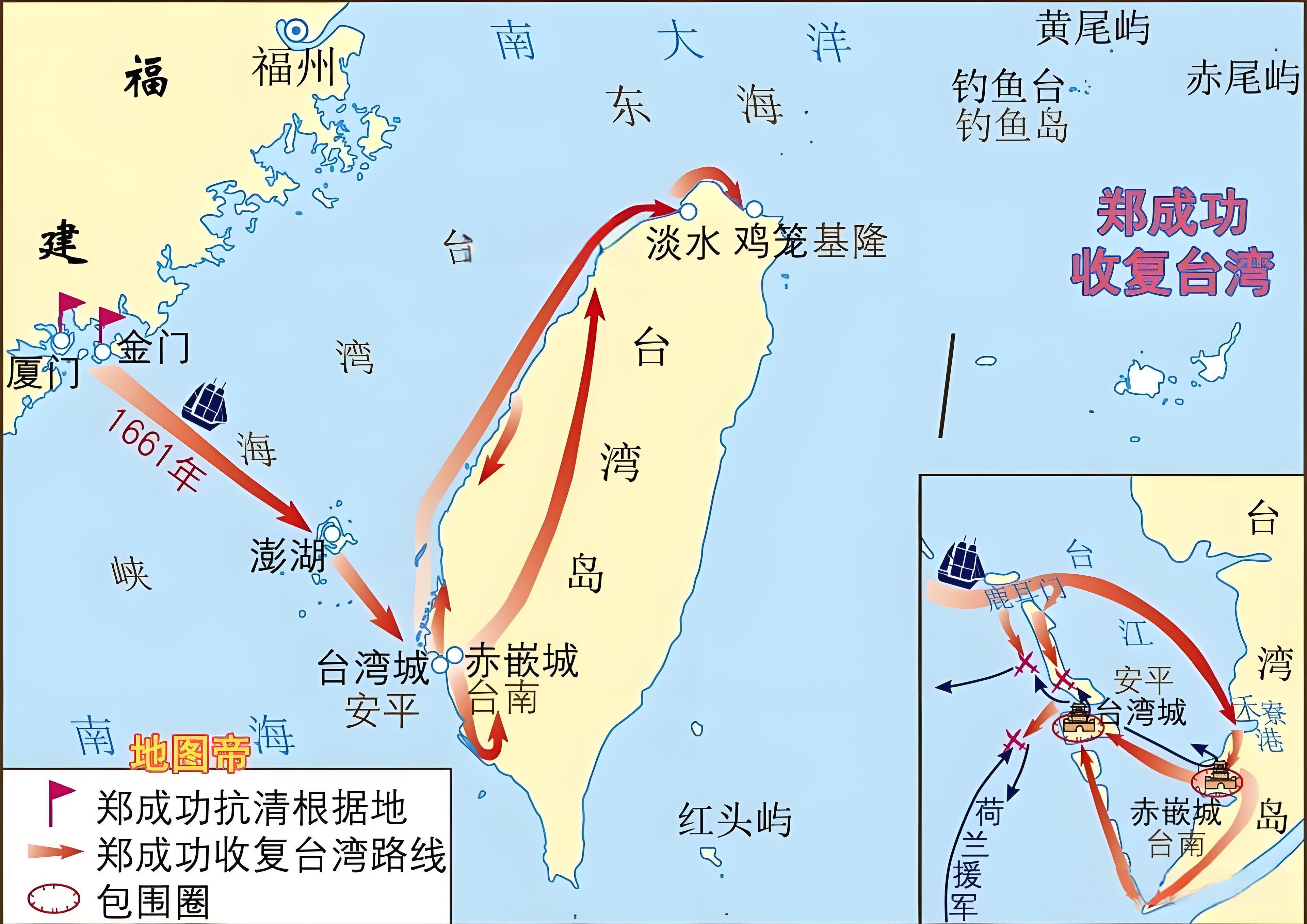 郑成功率军登陆台湾后,包围了荷兰人最重要的据点普罗民遮城堡,控制了赤嵌与热兰遮之间的海面,把荷兰守军围困在两个相互隔绝的据点里。