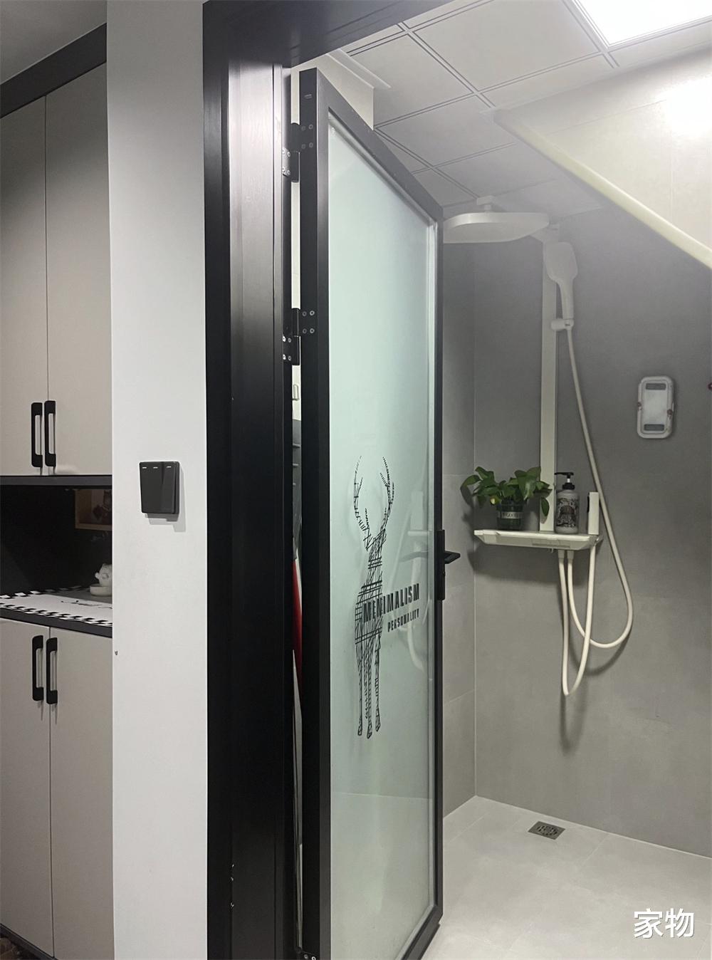 因为楼梯间的关系,头顶下压了不少高度,但好在留出了一个可以安装大花洒的地方,如厕洗漱沐浴倒也不影响,只不过洗完澡后要将水渍刮干净,才能避免卫生间潮闷。