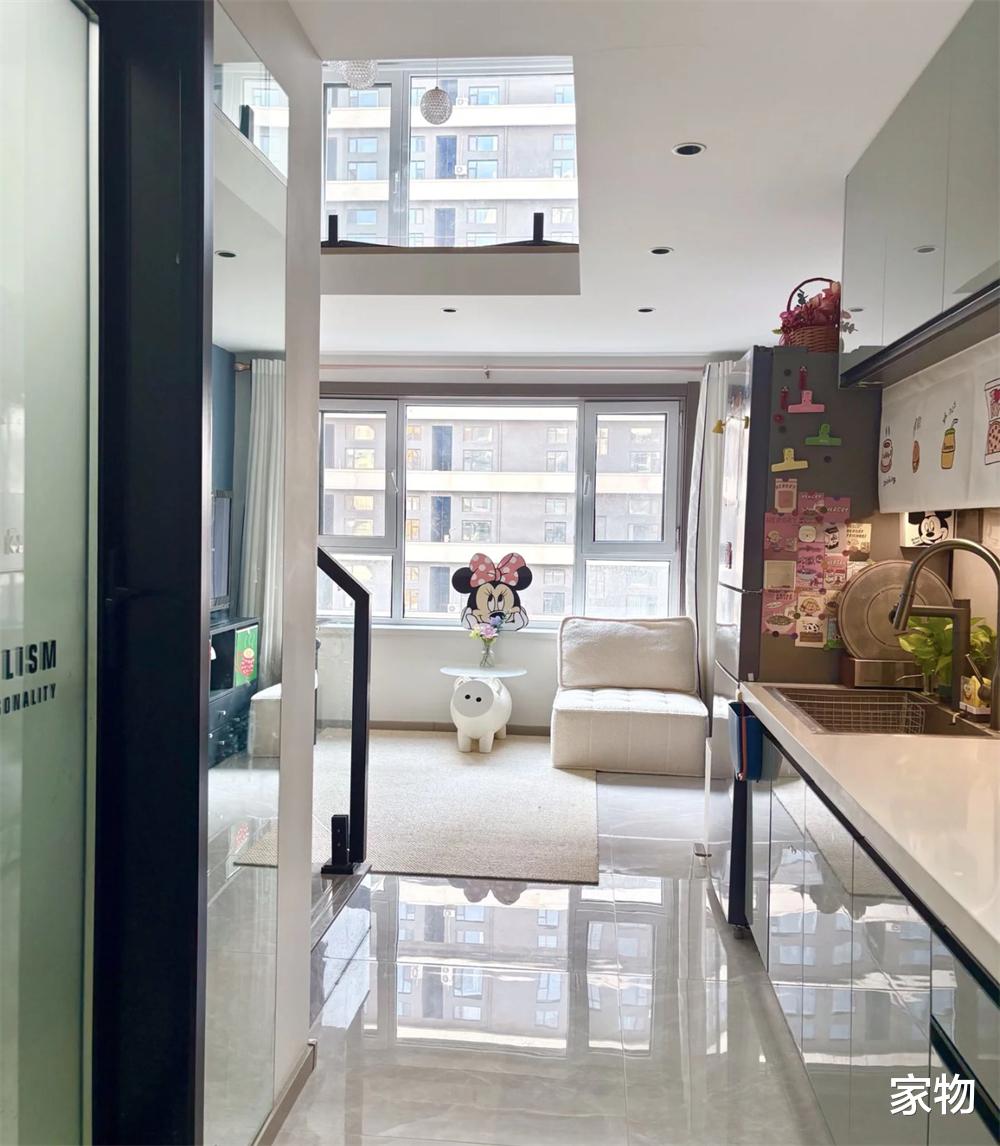 望向房间尽头,直接能看到尽头和隔层上的玻璃,它们将充足的自然光带入家中,让这20㎡的蜗居显得明快通透了许多。