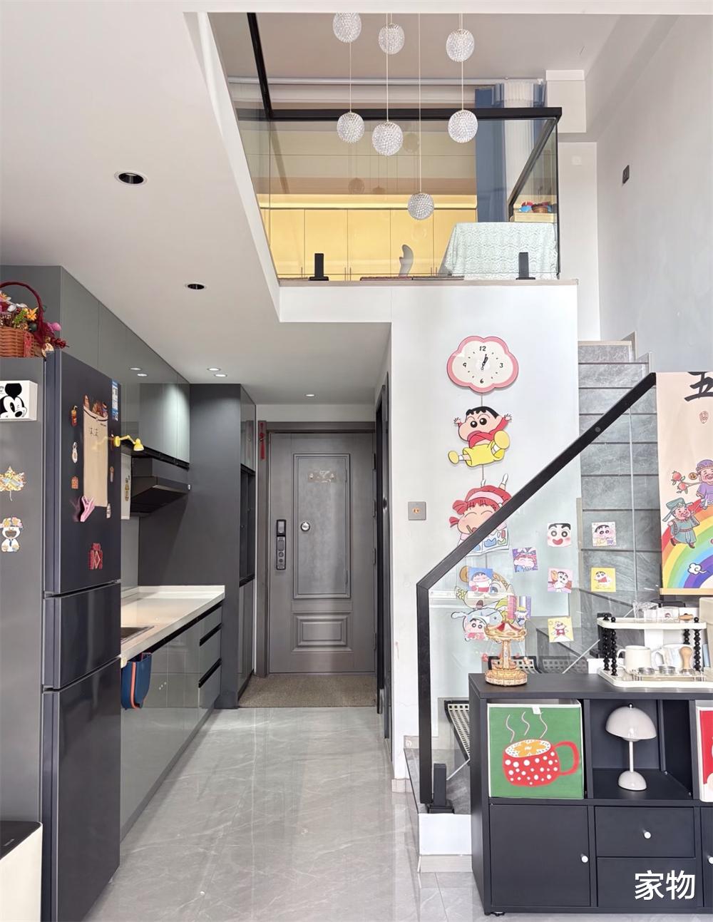 虽说家里整体面积很小,但层高却差不多有3米8左右,得以利用层高优势,隔断出上下两层,下层当做日常生活区,上层则做主卧室和书房,说起来也算是一室一厅一厨一卫的户型呢~