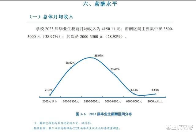 不过在薪酬方面,作为一所以文科专业为主的高校就比较吃亏了。学校2023届毕业生税前月均收入为4150.11 元;薪酬区间主要集中在 3500- 5000 元(38.97%);其次是 2000-3500 元(28.92%),此外5000-6000元的人数也占了23.49%。总体上来看薪酬待遇还是偏低了一些,不过这也是文科如今的通病之一。