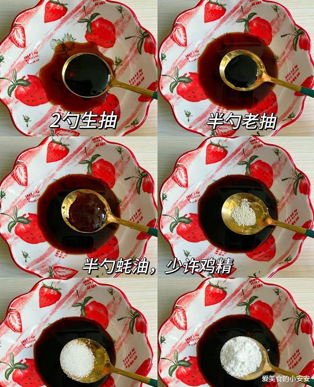 调料汁:生抽 2勺、老抽 半勺、蚝油 半勺、鸡精 少许、白糖 半勺、淀粉 1勺、清水 2勺 (调料汁用)