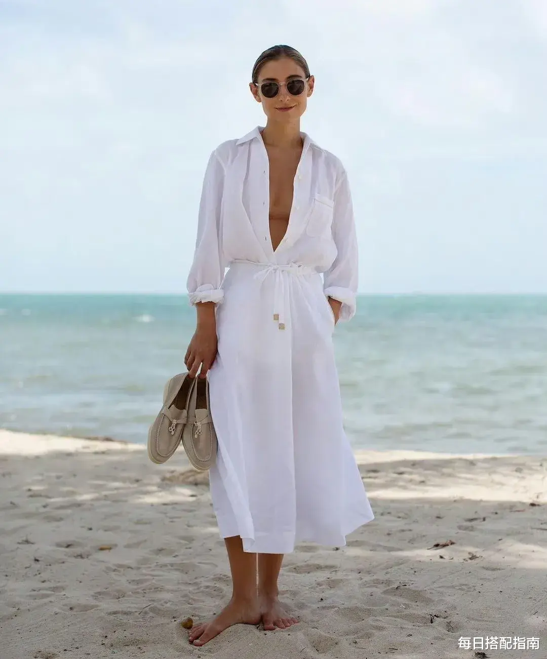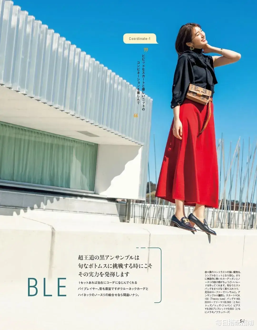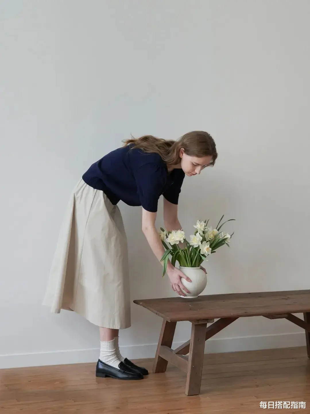 比如,在简单的半裙与乐福鞋基础上,你可以尝试轻薄的针织衫、开衫随意披在肩上,这样的做法能为整套搭配增加立体感,也显得更加轻盈灵动。