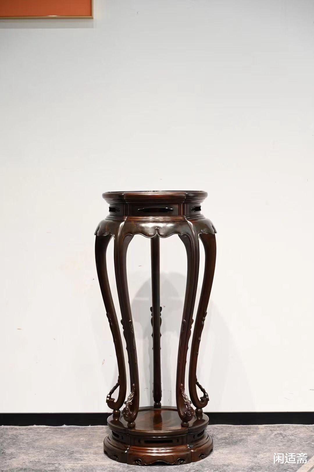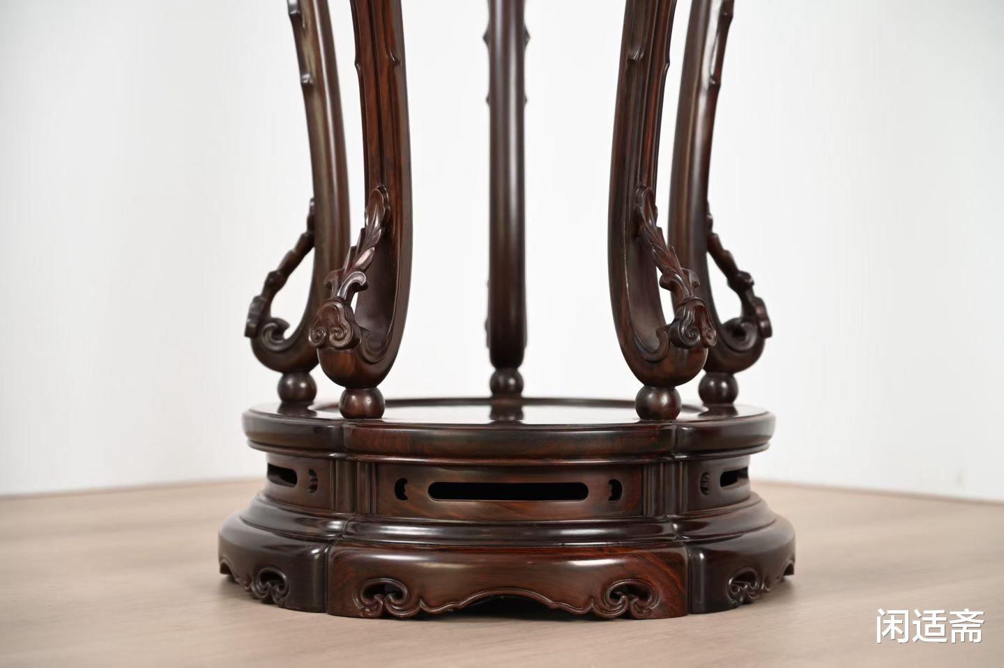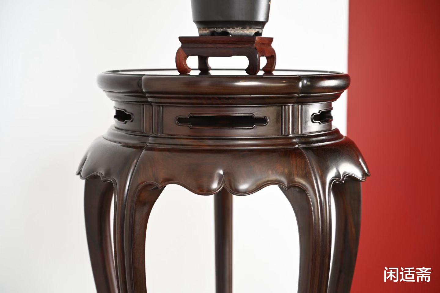 它不仅是实用陈设,更兼具文人雅趣与皇家格调,宫廷之中用以彰显威仪,文房茶室之中用以寄托闲情,佛道寺观之中用以承放法器,是中式生活美学的具象表达。而这款故宫款大红酸枝三弯腿五足圆香几,复刻故宫馆藏经典形制,以大红酸枝为骨,以三弯腿五足为形,将千年香几文化与传统工艺完美融合,既是焚香陈设的实用之器,也是彰显中式格调、兼具收藏价值的传世雅品。
