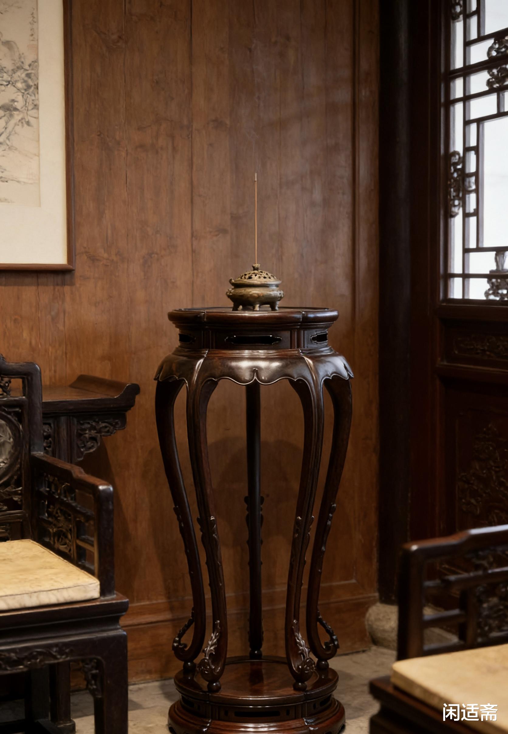 此香几体型适中,造型雅致,既适合摆放于中式厅堂,作为焚香、陈设摆件的载体,彰显厅堂格调;也可置于茶室、书房,搭配香炉、茶宠、古籍,营造清雅悠远的氛围,为品茗读书增添几分雅致意趣。它不仅是一件实用的陈设器物,更承载着中式传统文化的深厚底蕴,摆放于室中,无需多余装饰,便自带古雅气韵,彰显主人的品味与格调。是中式厅堂、茶室必入的雅器,更是值得世代珍藏、传递中式美学的传世之品。