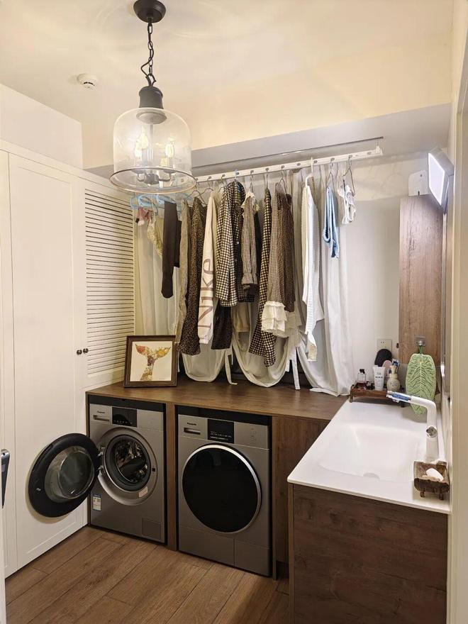 3)规划出一块独立的洗衣房,比如长阳台封一半、改造多余的客房等,避免日常琐碎蔓延到视线里。