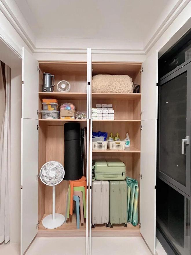 它不需要很大,哪怕是一平米角落,或者一组顶天立地的柜子,都可以当成“储物间”,把清洁工具、囤货、行李箱、杂物统统收进去。