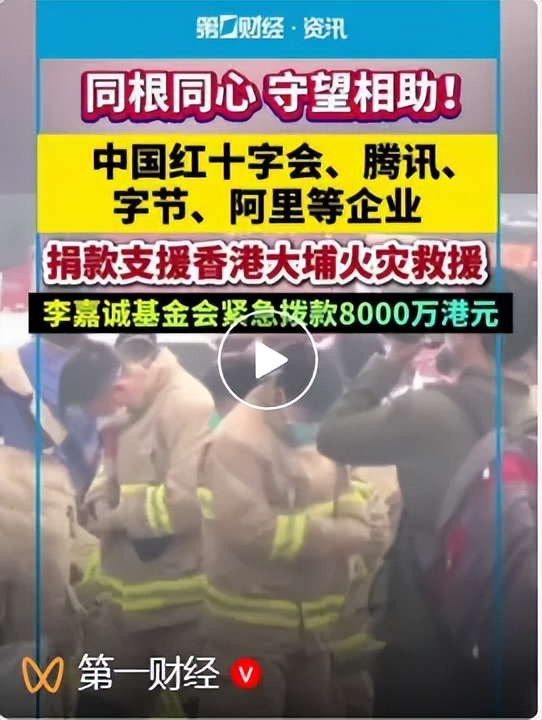 微信视频号“第一财经”的报道说,大埔火灾发生后,李嘉诚基金会紧急拨款8000万港元。