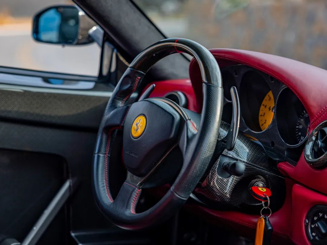 文中这辆2004年出厂的Challenge Stradale,以银色纽博格林涂装和更受欢迎的“无条纹”外观完成,首次交付给意大利的官方法拉利经销商Rossocorsa S.r.l.。根据随车的保修卡显示,这辆车于2004年9月16日交付给第一任车主。