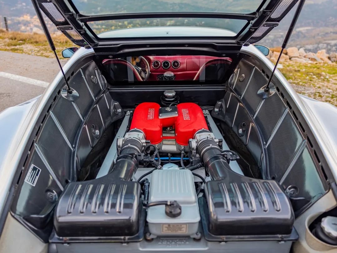 这辆车不仅保留了原厂的发动机,而且车况良好,是360 Modena最受欢迎的版本之一。永恒的银色纽博格林外观色彩搭配时尚的“无条纹”设计,再加上深红色的皮革内饰,使其魅力倍增。