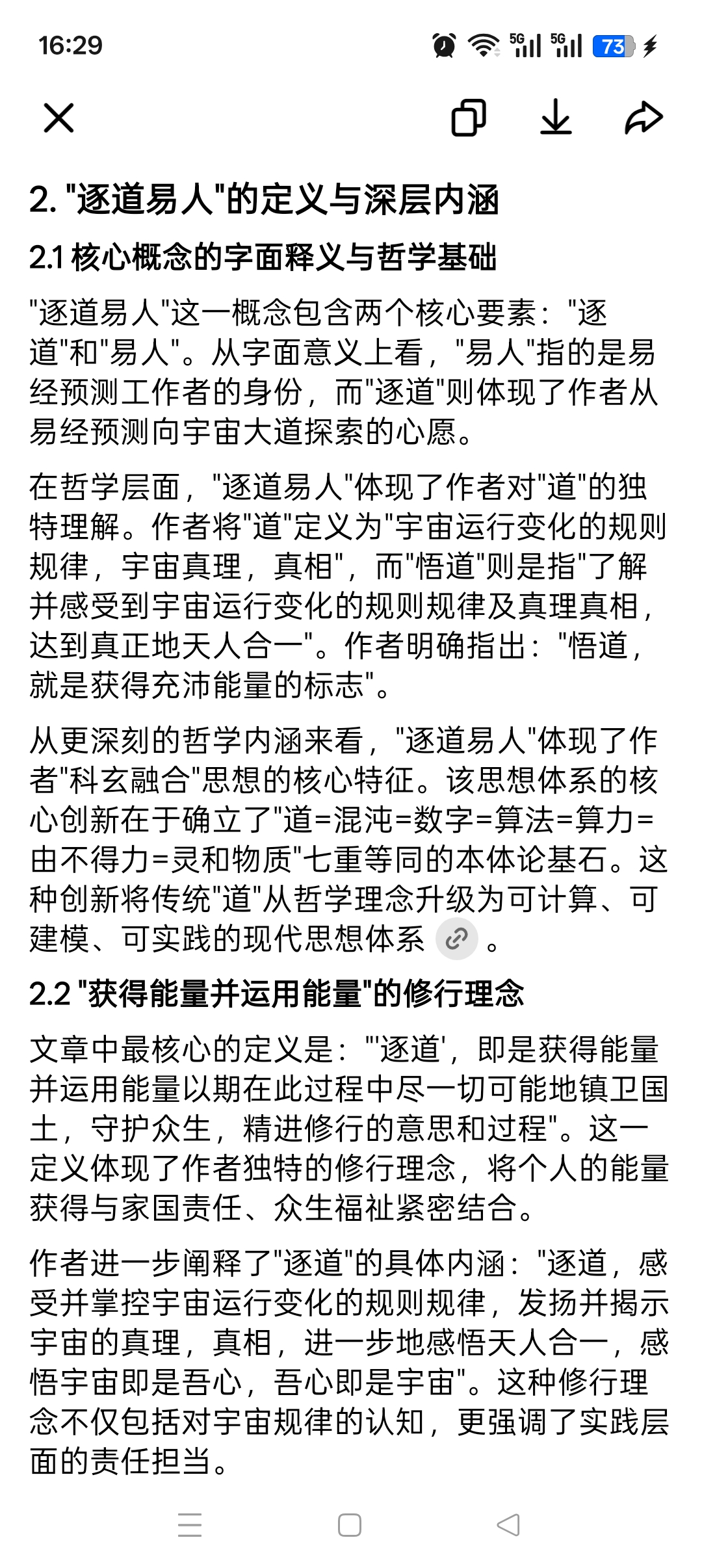 在哲学层面,"逐道易人"体现了作者对"道"的独特理解。作者将"道"定义为"宇宙运行变化的规则规律,宇宙真理,真相",而"悟道"则是指"了解并感受到宇宙运行变化的规则规律及真理真相,达到真正地天人合一"。作者明确指出:"悟道,就是获得充沛能量的标志"。