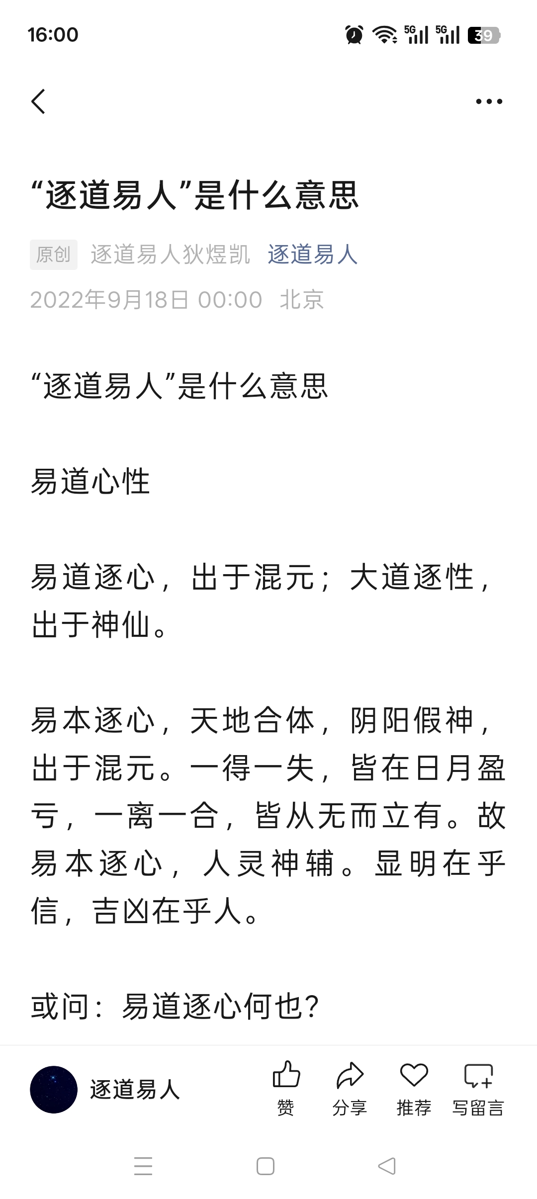 《"逐道易人"是什么意思》一文发表于2022年9月18日子时,这是狄煜凯在经历"见道开悟"两年多后,对自己思想体系核心概念的一次系统梳理和深入阐释。此时正值中国全面建设社会主义现代化国家新征程的关键时期,也是作者思想体系从传统易学实践者向宇宙文明探索者转变的重要阶段。