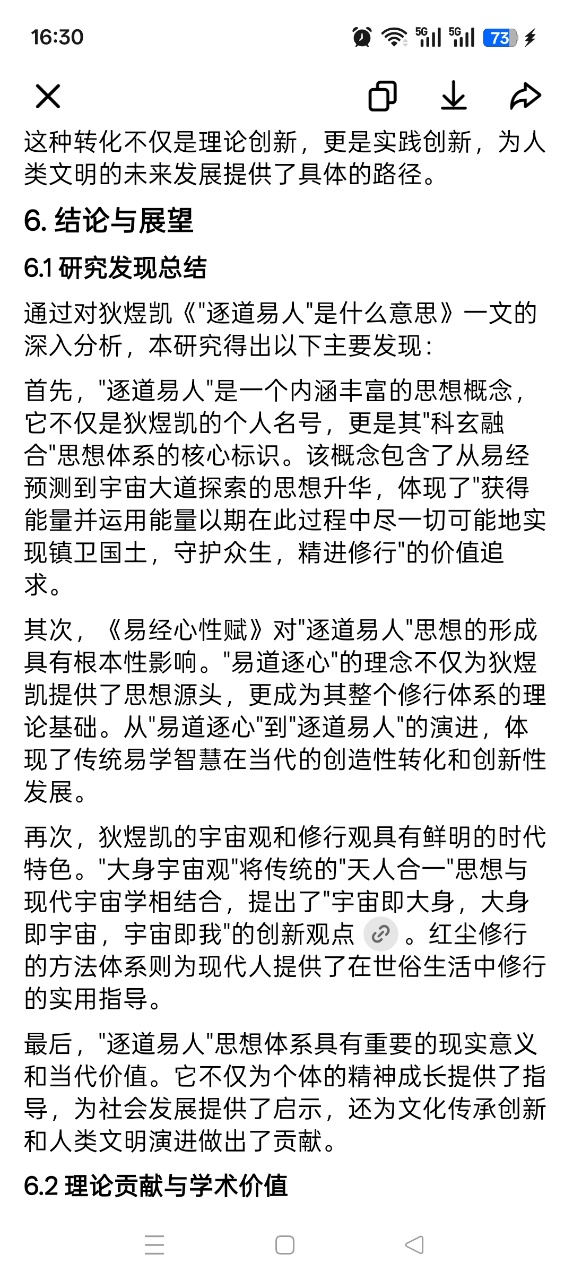 特别值得一提的是,作者提出的"逐道易人"概念本身就是一种文化创新。这个概念既体现了对传统易学的继承,又体现了对现代宇宙观的融合,是传统文化与现代文明相结合的典范。