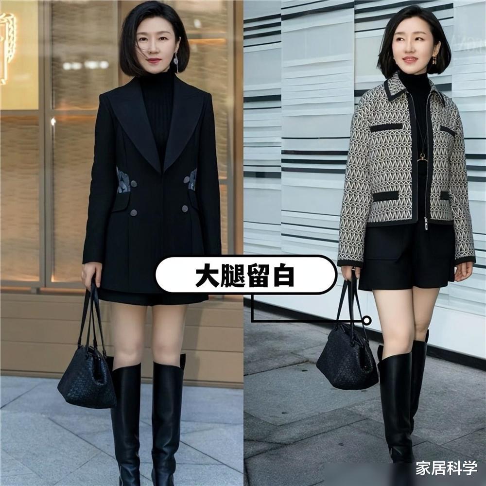 因此五六十岁的女性穿靴子,靴筒高度一定要遮住脚踝,这样既能显腿长,又不会出现视觉美感问题。