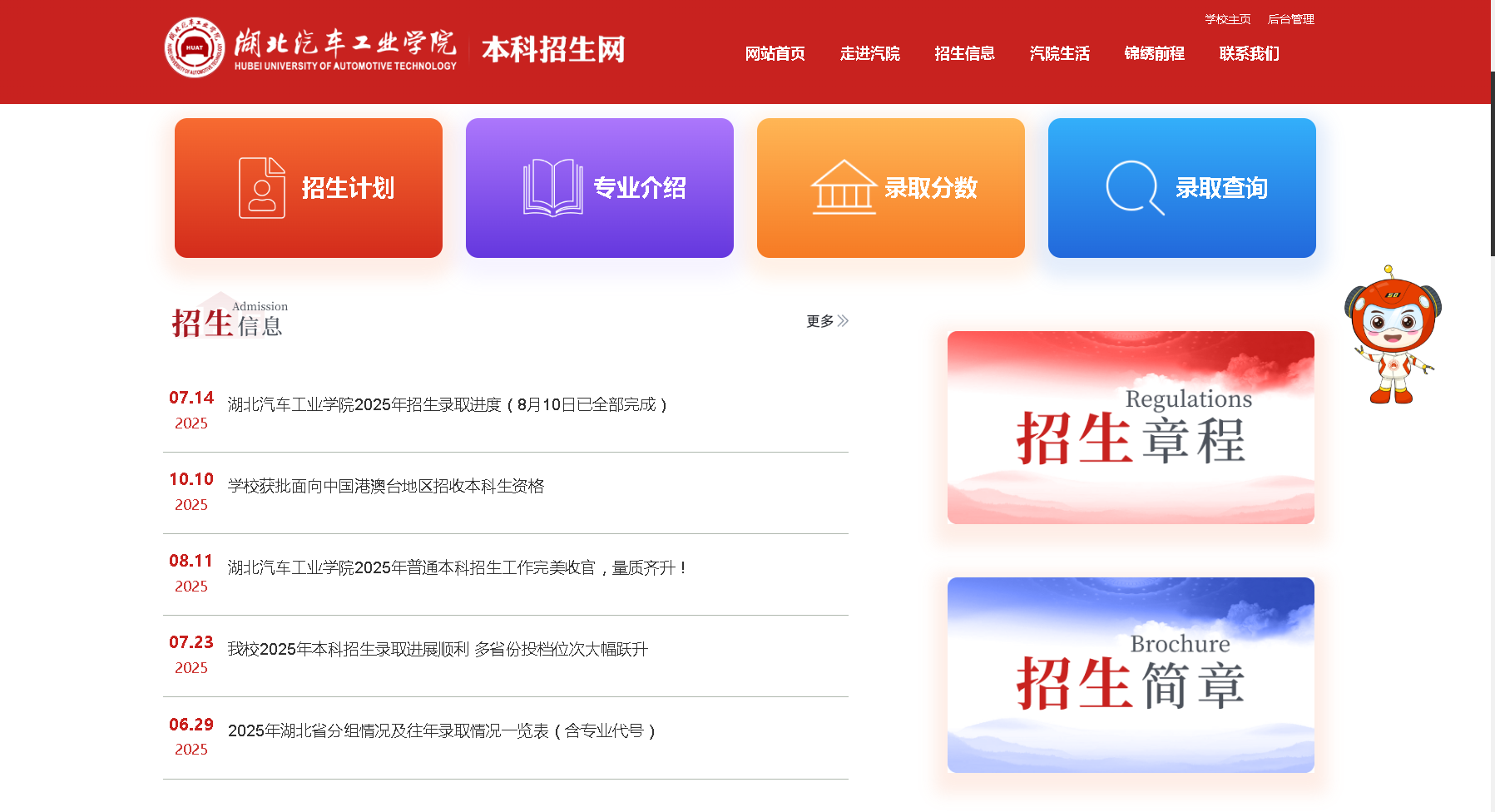 该校位于湖北省十堰市(中国商用车之都),创建于1972年,是全国唯一一所伴随民族汽车工业成长、发展、壮大起来并最具汽车特色的高等学府,也是原机械工业部直属院校、湖北省人民政府与东风汽车集团共建高校,被誉为“卓越汽车工程师的摇篮”。
