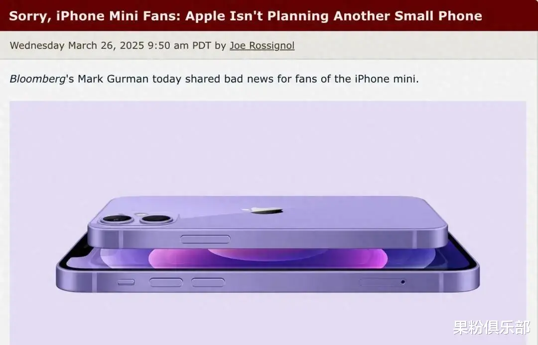 近日彭博社记者 Mark Gurman 透露,苹果已彻底放弃重启小屏手机的计划。