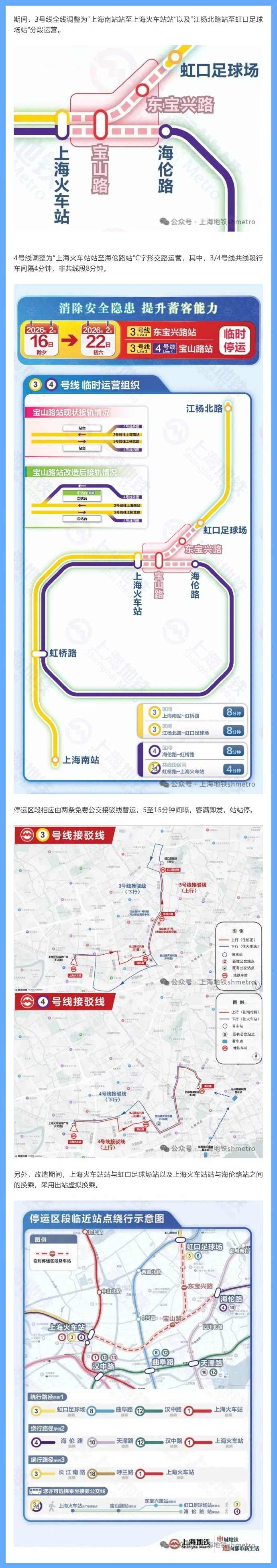 春节期间的2月16日(除夕)至22日(初六),3/4号线宝山路站升级改造,受此影响,3/4号线宝山路站和3号线东宝兴路站
