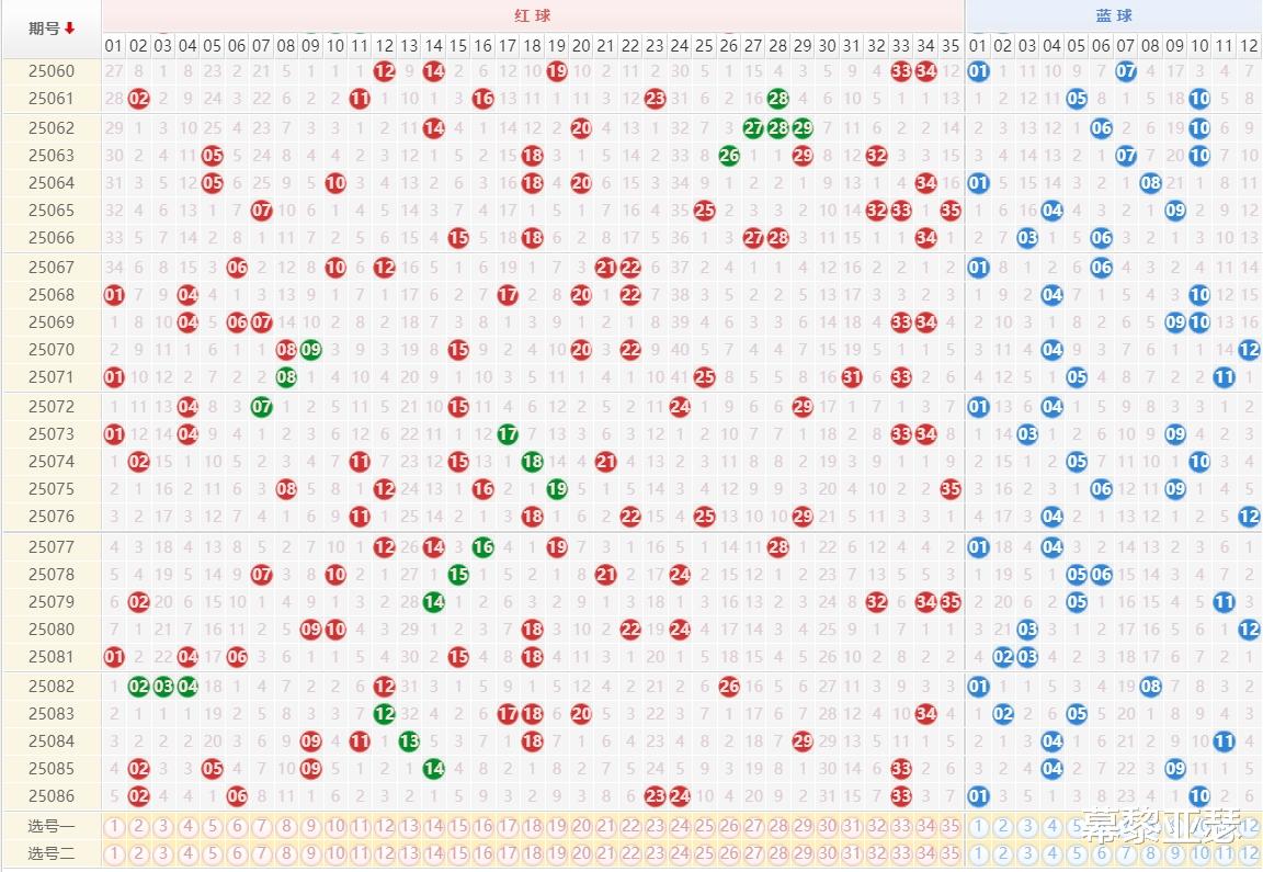 25086期大乐透出现了两个重号:02(基本)33(基本),本期预计重号:1个,从指向性看本期出现重号的机会偏小,但是历史走势图,本期存在两个间隔一期连续重号:10、28,个人怀疑有可能出现一个重号,因此本期防红球:10、28
