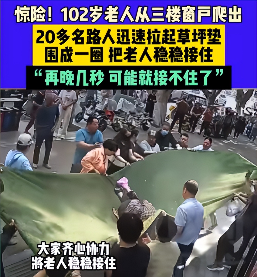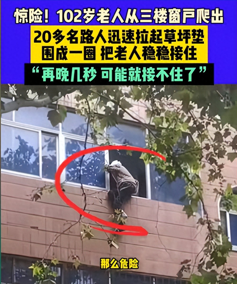好惊险,102岁老人误把窗户当门,从3楼掉下来,路人默契组织营救,民法典第184条明确免责