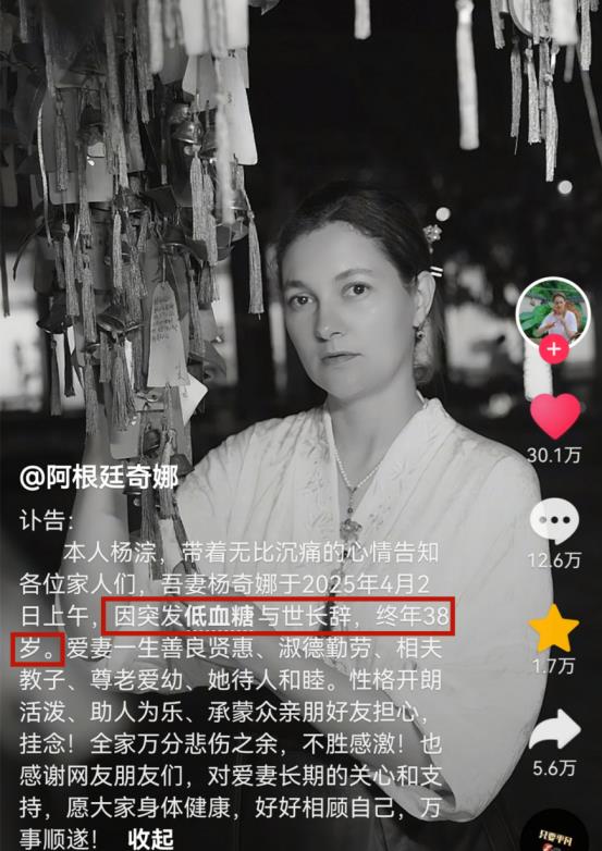 网红来自阿根廷嫁到中国的洋媳妇奇娜就因为低血糖失去了自己的生命,留下还未成年的孩子们。