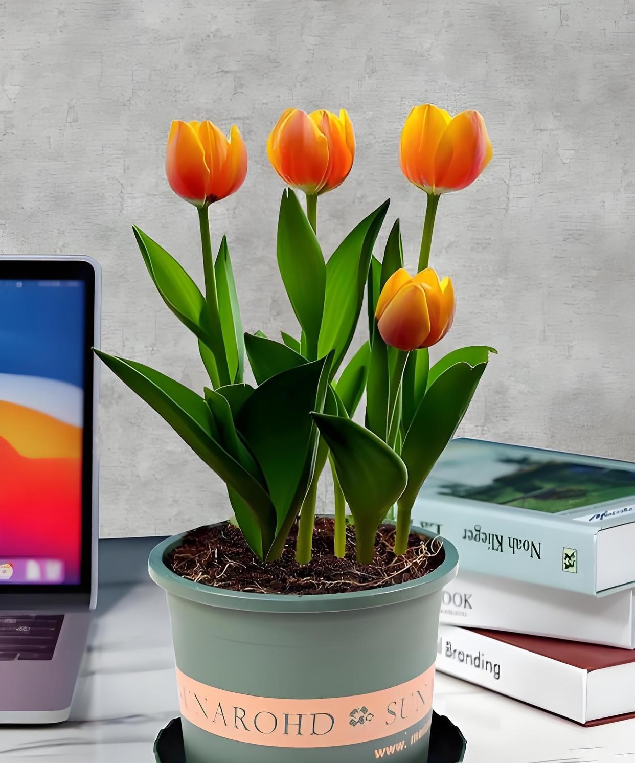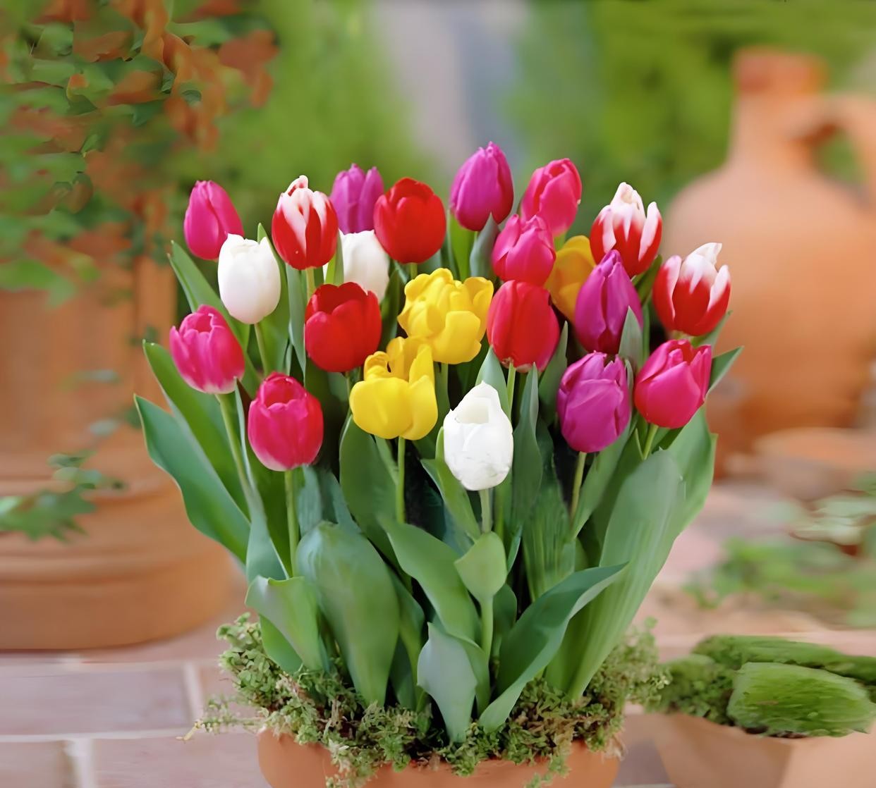 郁金香喜光,应将其放置在室内阳光充足的地方,充足的阳光不仅可以使花朵更加鲜艳,还能促进植株进行光合作用。