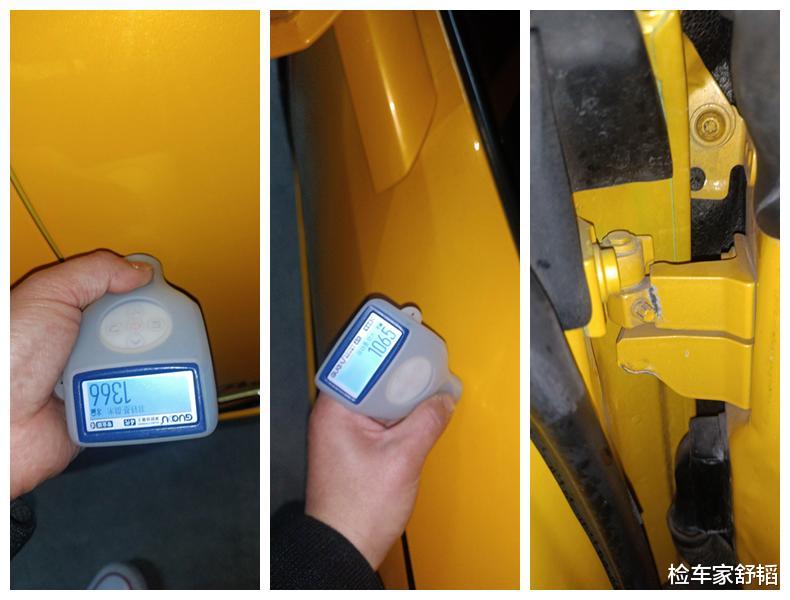 不过车身左侧证实有刮蹭事故,车门钣金,腻子厚度1000多μm,车门螺丝拆装,螺丝支架磕碰掉漆!