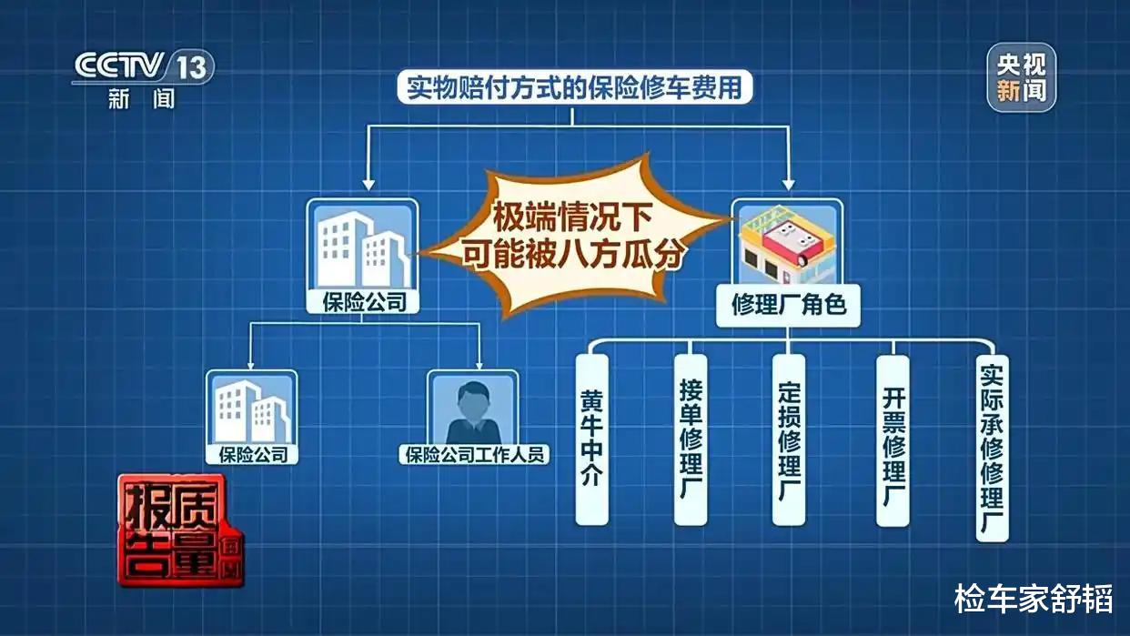 看过的朋友应该知道,一辆宝马车的维修,一共有三家修理厂参与瓜分费用,一家负责开票,一家负责定损,一家负责实际维修。在维修过程中,车在两个修理厂之间拖车和行驶6次,而有些更换的部件是拆车旧件,以极低的成本来保证利润,维修质量可见一斑!而极端情况下,可能八家人员或机构参与瓜分。