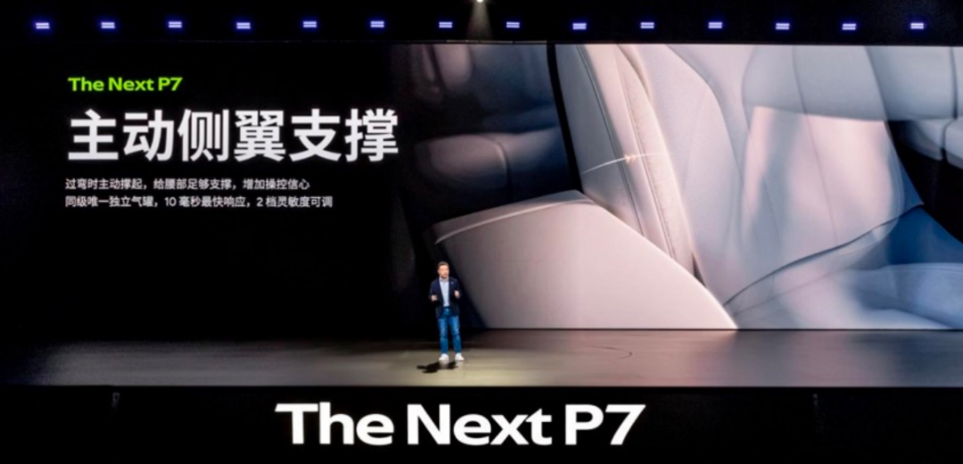 全新小鹏P7将美学设计延伸到座舱细节。一体式豪华运动座椅采用Nappa真皮与Dinamica超纤绒材质,支持16向电动调节,主副驾具备通风、加热与按摩功能。主驾分体腿托与主动侧翼设计,既能在激烈驾驶中提供支撑,也能在长途行驶中带来舒展的舒适感。