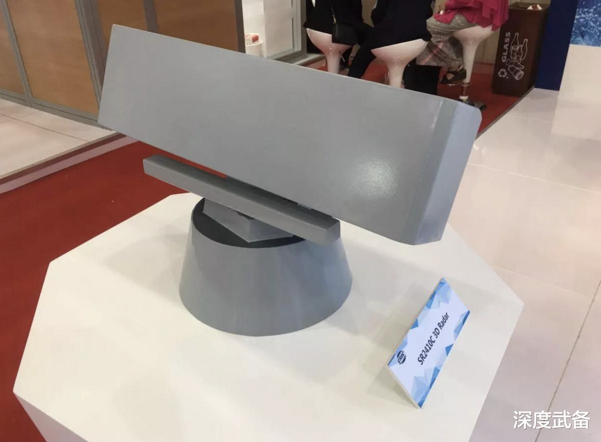 该舰的主炮选用了国产76毫米主炮,这在意料之中,但令人惊喜的是在其貌不扬的桁架桅杆上,竟然配备了专供外贸舰艇装备的SR2410C型雷达,这是首次出现在国内自用舰艇上。该雷达目前主要装备了外贸的F15A轻护、C13B轻护和054AP型护卫舰,与荷兰泰雷兹的SMART S性能相近,是一款集成单面旋转相控、分布式固态发射和接收、全数字波束形成、电子稳定平台等技术的S波段有源数字阵列体制、中近程多功能三坐标雷达,方位上采用机械扫描、仰角上采用相位扫描,适装于中小型水面舰艇和岸基、车载平台。