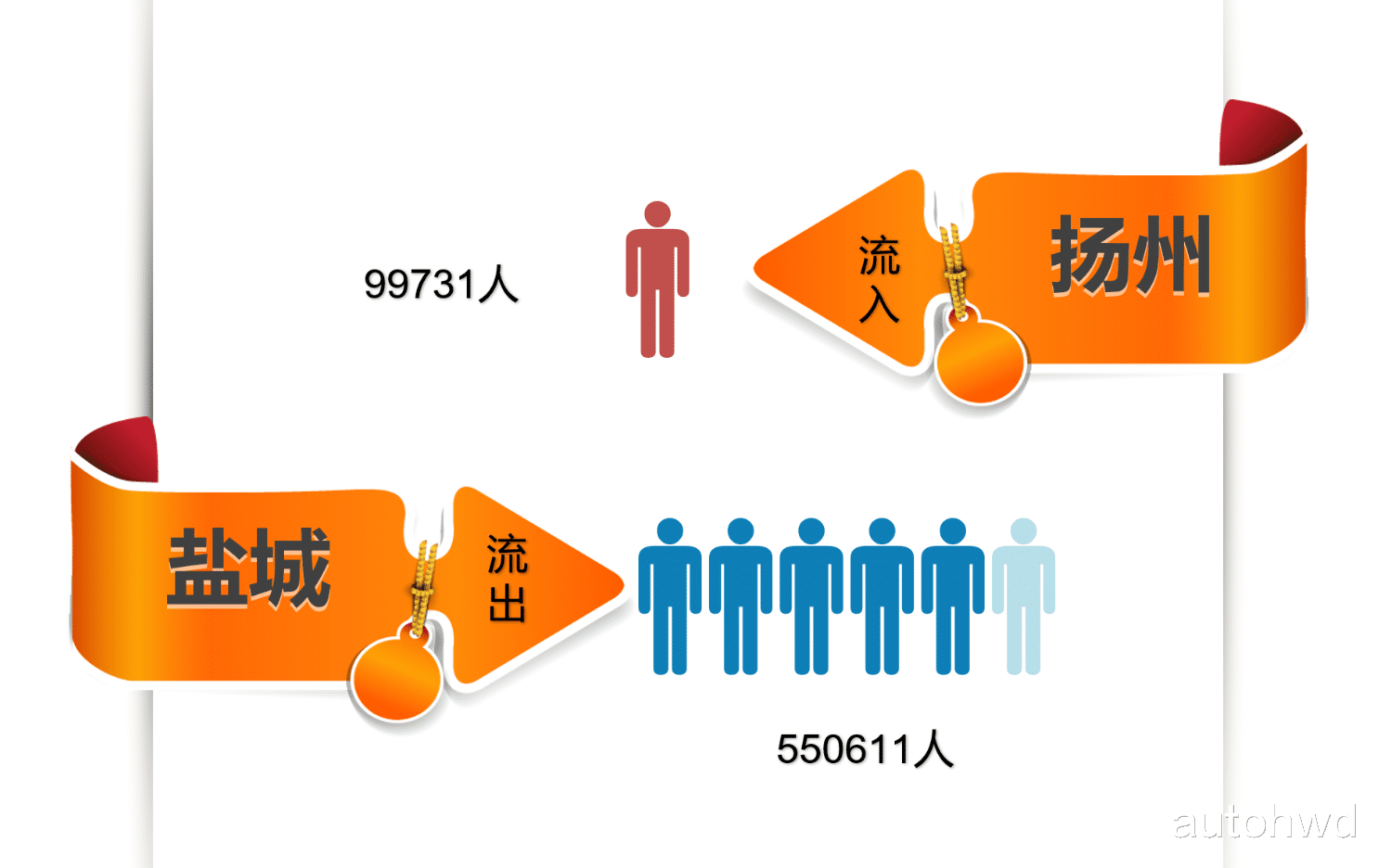 其他各个方面,扬州都稍稍占优势,但近10年人口流动量,扬州流入人口达到99731人,而盐城却流出人口达到550611人。一个城市流入近10万,而一个城市流出55万人,这个中间差距还是很大的。