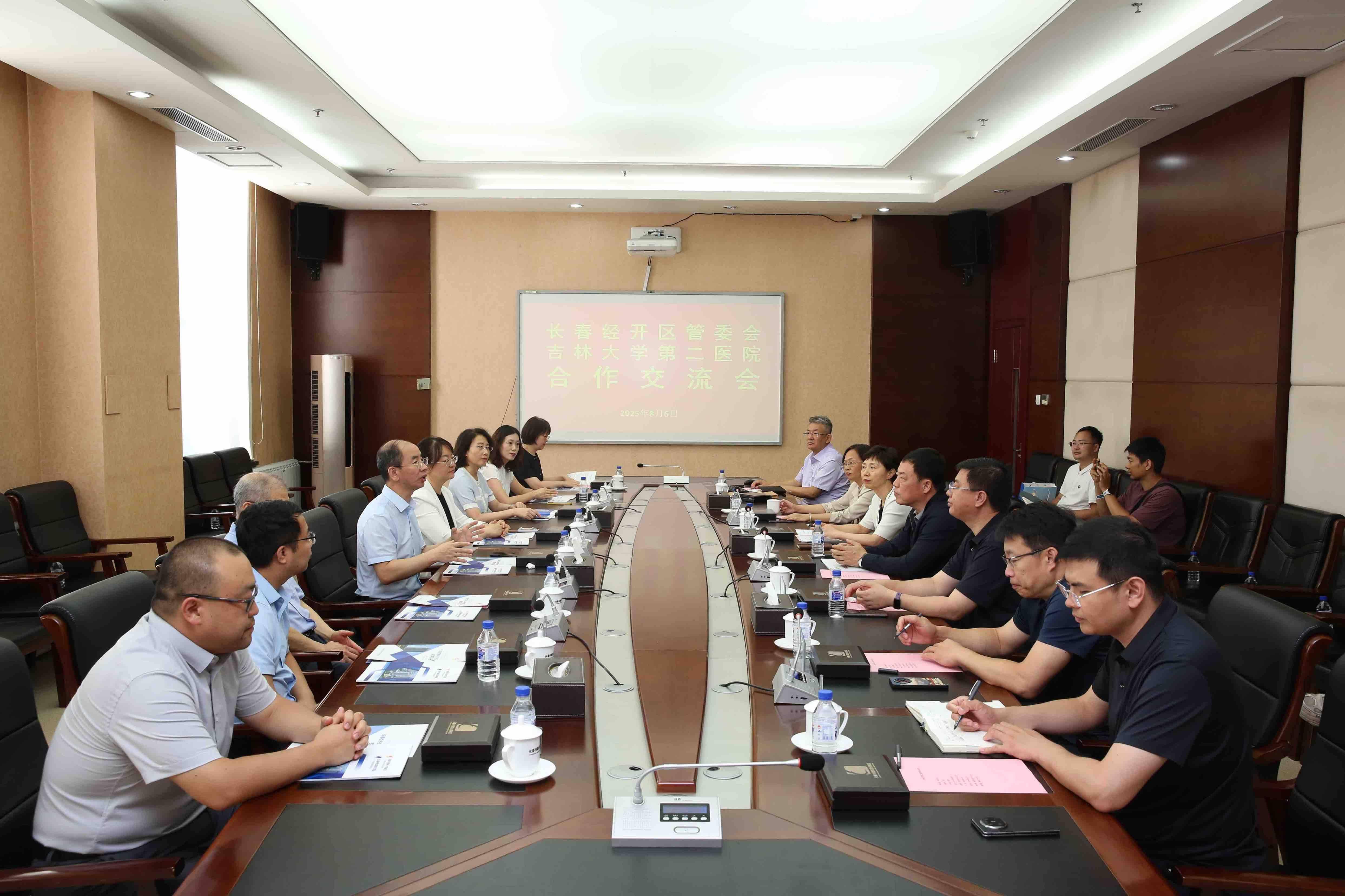 为贯彻落实国家“健康中国”发展战略,加快构建“3转4强7新”现代产业体系,深入实施科技创新战略,抢抓高端医疗器械产业发展机遇,8月6日,长春经开区与吉林大学第二医院在兴隆综合保税区管委会开展座谈,围绕共建中国“北方眼谷”及相关科技成果转化、产业生态完善、院地战略合作等议题深入沟通,达成合作共识。
