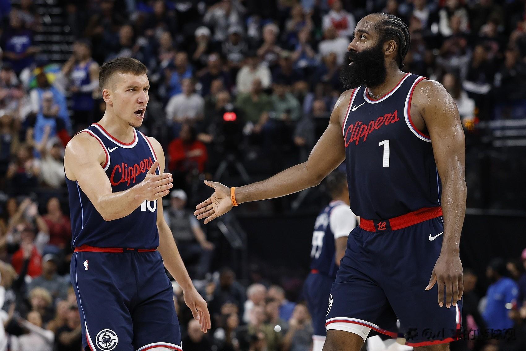 快船虽然输球,但是轮转体系逐步稳定下来,首发阶段哈登、莱昂纳德和祖巴茨都可以单打,替补衔接段哈登或者莱昂纳德带全空间阵容,打得依然很舒服,比赛的逻辑已经梳理好了。