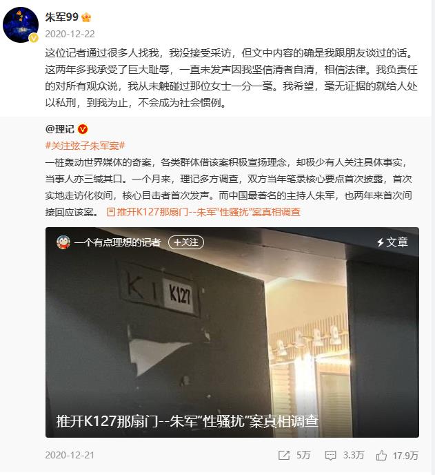 毕竟朱军也坚持:法律终会还自己一个清白。